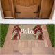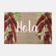 Pimienta roja vintage con algún texto español " Hola " doormat con cierto sentimiento nostálgico y aspecto burlap . Diseño de Alma Wad ,
