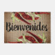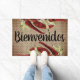 Pimienta roja vintage con algo de texto en español " Bienvenidos " doormat con algo de nostalgia y aspecto de burlap . Diseño de Alma Wad ,