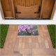 Esta alfombra de la puerta de bonito tiene flores de bonito rosada que cubren una cornisa de roca. Genial para ese hogar en el país.