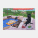 Fiesta Piscina Labradors 2 Pintar Doormat. Postal de pintura caprichosa y graciosa Labrador. Pintura de Labrador pintada por Naomi Ochiai. Labrador negro, Labrador chocolate, Labrador amarillo están pintados en la imagen. ¡Feliz Fiesta de Pool! Black Lab está revisando sus correos electrónicos a través de Paw Pad. ¡El laboratorio de chocolate está tomando hamburguesas! Yellow Lab disfruta flotando en el agua mientras que otros tres perros labradores se divierten.