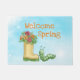 Bienvenido al Doormat de la oruga de primavera. Una oruga verde y un flor de bota de lluvia adorables.