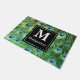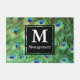 El pavo real intrépido, vibrante, y moderno empluma en tonalidades del trullo, del azul, del bronce, y del verde con una casilla negra decorativa y su opción de la letra blanca del monograma y del apellido completo.