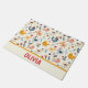Pollos de colores adorables y personalizados en el patrón de la granja en una estera de fondo amarillo claro.