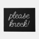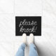 Por favor, llame antes de entrar en el doormat de escritura negra. Emblemador para nueva casa, negocio, tienda, salón, restaurante, oficina, club, hotel, boda, etc. Diseño en blanco y negro. Alfombras de entrada medianas y grandes.