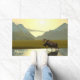 En algún lugar del interior de Alaska, un alce se desplaza por un estanque en una soleada tarde de otoño. A medida que se acerca el final del año, la luz se ha iluminado en un tono amarillento que hace que todo parezca un poco frágil. El sol está cayendo entre las montañas en segundo plano. También aparece un texto de personalizable que dice "Alaska".