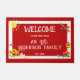 Bienvenidos a su primer hogar con este diseño vintage rústico y alegre que crea la sensación perfecta en su puerta principal, entrada o porche. Esta encantadora composición presenta girasoles amarillos brillantes, azulejos felices, pollitos lindos, una casa de pájaros rústica y un caprichoso avión vintage contra un fondo clásico bordeado de rojo y blanco.