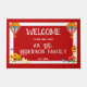 Bienvenidos a su primera casa con este fantástico diseño rústico que crea la sensación perfecta en la puerta de entrada, entrada o porche. Esta deliciosa composición se compone de girasoles amarillos brillantes, pájaros planos felices, gallinas preciosas, una casa de campo rústica y globos de aire caliente a rayas azules, rojas y blancas, todo de color, con un fondo clásico bordeado de rojo y blanco. Perfecto para recién casados que establecen su primer hogar casado o para los compradores de su primera casa que celebran su hito en el calentamiento de la casa, este diseño captura la nueva alegría inicial con un atractivo eterno. La elegante paleta de colores rojo y blanco combinada con la tipografía moderna realza cualquier decoración de entrada o jardín. Personalízalo con tu apellido familiar y año establecido para crear un conservador significativo para tu primera experiencia de vida en casa. Este diseño clásico y elegante sirve como decoración funcional en casa y como una hermosa celebración de los hitos de los propietarios, lo que lo convierte en un excepcional regalo de bienvenida para las parejas.
