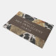 Crea un cálido y moderno saludo a tus estudiantes y visitantes con este elegante felpudo de profesores personalizado. Su impronta rústica neutra de madera texturada combina bien con muchos estilos de decoración de clase. El fondo es un moderno patrón de zag chevron de zig superpuesto con una caja marrón oscura sobre la parte superior para resaltar a texto editable. Actualice el texto con su bienvenida personalizada y el nombre del profesor. Hace un gran regalo de regreso a la escuela y el regalo de agradecimiento a los profesores. Diseño de Ms_Jade. © Ms_Jade