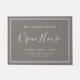 Una elegante propiedad de casa abierta que enumera la plantilla de doormat en un estilo clásico tradicional y letra manuscrita sobre un elegante fondo natural con un sencillo borde doble. Añade fácilmente tu nombre y datos de contacto (teléfono, correo electrónico, medios sociales y más). ¡El accesorio perfecto para cualquier agente inmobiliario o agencia de listado de propiedades!