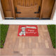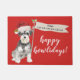 Cute Happy Howlidays Miniatura Schnauzer Dog con un sombrero de santa con un cartel con el mensaje Paw - la - la- la. tapete de puerta sobre un fondo rojo. Visite nuestra tienda para ver una gran variedad de panes de perro