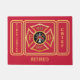 Esta alfombra de puerta está decorada con el escudo cruzado de maltés jefe de bomberos jubilados, y se puede personalizar reemplazando la palabra "retirado" por un número de casa o lo que sea que se elija.