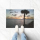 La escena tranquila de un sol poniéndose sobre el océano en calma, junto con palmeras que se mecen suavemente, crea una atmósfera acogedora, perfecta para transformar cualquier espacio en un retiro pacífico donde puedes relajarte y descansar.
