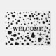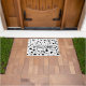 Cuidada alfombra de bienvenida cubierta de manchas dálmatas. El texto se puede personalizar con el nombre de su familia. Un felpudo perfecto para los amantes del perro dálmata.