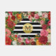 Un ramo rico de rosas hermosos del vintage y otras flores con el bluebird adorable rodean un círculo del purpurina del oro sobre rayas blancos y negros. Disfrute de este diseño de moda substituyendo el texto de la muestra por sus el propio para un regalo personalizado. Hace un regalo maravilloso para el cumpleaños, el día de madre, la ducha nupcial, el compromiso, la boda, el aniversario, el retiro, el estreno de una casa y otras ocasiones especiales.