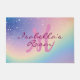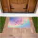 Doormat de color brillante a la moda con mezcla turquesa, rosa y malva y purpurina amarillo claro con numerosas estrellas. Puede personalizar esto agregando su nombre e inicial.