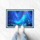 Una interpretación rosada y azul fractal de las auroras boreales reflejada en la superficie del mar. Qaanaaq es un asentamiento en el norte de Groenlandia. También aparece el texto "BIENVENIDA".