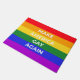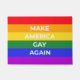Esta obra de arte incluye un tazón de lluvia y la frase "Haz que América sea gay de nuevo".