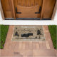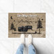Este portero rústico es el regalo perfecto para su remolque de viaje de quinta rueda. Las palabras de arriba pueden ser personalizadas a lo que quieras. Algunos ejemplos son "campistas felices" o "bienvenidos a nuestra casa" o lo que quieras. En la parte inferior puedes añadir tu propio nombre o poner lo que quieras también. El doormat presenta pájaros volando sobre montañas con la luna y estrellas en el fondo y una fogata en primer plano.