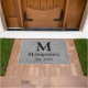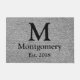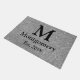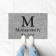 Doormat gris moderno de la raspa de arenque con la letra negra del monograma, el apellido, y la fecha establecida.
