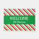 Doormat en franjas diagonales de caramelo rojo y verde, con texto personalizado