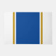 Este colorido y deportivo diseño presenta un bloque de color central vertical azul profundo extra con pinzas doradas flotantes sobre un fondo blanco y nítido.