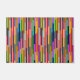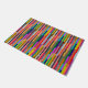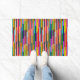 Este doormat tiene un diseño geométrico de franjas coloridas que corren verticalmente.