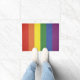 Colores de la decoración del orgullo de la bandera del arco iris de LGBT (lesbiana, gay, bisexual, y transexuales) en fondo rayado