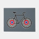 Un doormat moderno de la mirada para los ciclistas y cualquier persona que está en las bicis. En el centro del diseño está un gráfico blanco y negro de una bicicleta de los hombres clásicos. El marco de la bici es negro sólido con un esquema blanco y rayos retros de la mirada. En el centro de las ruedas está un gráfico rojo, blanco, azul y negro de la blanco. El panel del fondo es gris oscuro pero usted puede cambiar el color al juego con el botón del personalizar. La estera de puerta sería una elegante con todo diversión y regalo casero práctico del estreno de una casa o nuevo para el motorista en su vida.