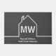 Este doormat de oficina personalizada de inmobiliaria gris oscuro es sencillo y sutil con tu monograma y el nombre de la compañía inmobiliaria en blanco. Cuenta con una moda con un minimalista contorno blanco de una casa. Estera de puertas de negocios moderna.