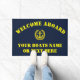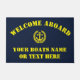 Dé la bienvenida a bordo del ancla del barco y del texto náuticos del barco
