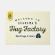 Anime a los visitantes a su hogar con este diseño único de la tipografía que ofrece el mensaje, "recepción a la fábrica del abrazo de la abuela. Los mejores abrazos en ciudad." También ofrece a la gente que abraza el icono al lado del tagline. El diseño aparece en marina de guerra, y el fondo del amarillo y amarillo claro. La bandera en esquina superior izquierdo incluye frase, "abre 24 horas."