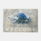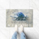Acoja con satisfacción su familia y amigos con uno de nuestros doormats personalizados. Este diseño inspirado náutico tiene un seashell azul fotografiado en el centro en un fondo de la arena. Arriba está un área del sello para poner su ciudad, fecha y estado. Debajo de la cáscara es su apellido en una tipografía moderna de la escritura para que usted personalice el anuncio la palabra "recepción". Diseñado por el ©Tim renombrado Coffey del artista del mundo.