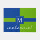 Una manera moderna y elegante a las huéspedes agradables adentro a su hogar. Kelly verde y los colores azules brillantes, personalizados con su inicial con monograma y la palabra "recepción" están en este hermoso, estera de puerta principal. Para un tacto del diseñador dentro de sus… productos de coordinación caseros Add. Visite por favor mi tienda "la princesa de Hungarican" en www.zazzle.com/hungaricanprincess*. Mire en mi categoría "azul y verde" del departamento o "colección azul y verde".