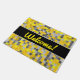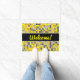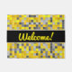 Las características del este de puerta diseño de la estera a rejilla-como modelo tejado de los cuadrados colorearon varios tonos de amarillo y del gris. También ofrece el mensaje amistoso "recepción!" en el frente en amarillo escritura-como el texto.