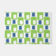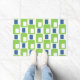 Este felpudo está cubierto de rectángulos retro de cal verde y azul. Diseño divertido para cualquier ocasión.