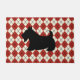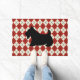 Este elegante felpudo escocés de Terrier está decorado con un clásico estilo de argyle rojo y crema. El diseño es de arte original.