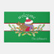 Para las vacaciones de invierno, este felpudo tiene un Robin rojo, con una bufanda morada y un gorra rojo. El Robin descansa en ramas verdes de eucalipto con bayas rojas. Se puede personalizar todo el texto.