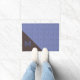 Elegante alfombra de puerta azul regencia, con un metalizado diseño de círculo decorativo. La esquina inferior izquierda está hecha en color marrón sólido, con un monograma de letra única azul regencia listo para personalizar.