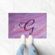 Felpudo Resumen de Girly Zebra | Monograma morado rosado