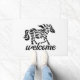 Impresión de bloques de madera hechos a mano de un caballo en marcha abstracto, basado en el patrón de pieles de fiordo, con la palabra "Bienvenida" debajo. Para los amantes del caballo.