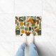 Este patrón muestra un patrón moderno de mediados de siglo con formas de plantas estilizadas y formas geométricas en una paleta de colores cálidos y terrenales. La disposición densa de mostaza amarilla, verde oliva, verde azulada oscura, naranja quemada y crema crea un ritmo retro y juguetón con un uso eficaz del espacio negativo.