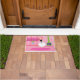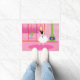 Esto retro en la estera de puerta rosada parece una escena fuera de una comedia romántica de los años 60. El diseño minimalista muestra a una mujer sofisticada en su ultra kitschy y ultra rosado, apartamento del ático. El cuarto ofrece una pared de ladrillo rosada con las líneas blancas de la lechada. Delante de la pared, hay una chimenea verde del cono con un fuego del rugido. A través de puertas de vidrio de desplazamiento vemos un balcón rosado con una verja blanca. Una planta enorme, tropical está en una maceta de la aguamarina. La visión desde el balcón está de una silueta de un horizonte grande de la ciudad. ¡Por supuesto, la silueta está en sombras del rosa! Un amarillo, luna creciente está en el cielo. Colocándose en una rosa fuerte, la manta de pelusa en el apartamento es el protagonista de este diseño. En fuerte contraste con el mundo atractivo que ella ha creado, el blonde hermoso está llevando un ajuste de forma, negro, top cucharada-necked con una falda larga, señalada por medio de luces, blanca con adornos negros de la pluma. ¡Con este diseño, usted puede mirar también el mundo a través de los vidrios coloreados color de rosa!