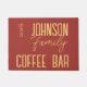 Este es un diseño personalizado, de nombre familiar, con temas de café bar. Este moderno diseño está en un marrón rústico con una tipografía de escritura elegante de color dorado. Tiene espacio para que añadas tu apellido y el año establecido. Perfecto para su cocina familiar o para su casa, estación de café o zona de bar, ideal como un regalo personalizado de la casa. Para personalizar, simplemente añada tu nombre y año en el cuadro de texto personalizar este, aquí puedes cambiar el texto de "Barra de café" si lo deseas. Para cambiar el color o el tipo de letra, desproteja la herramienta de edición de diseño. Para obtener ayuda con la personalización o para un diseño personalizado, póngase en contacto conmigo a través de zazzle chat.