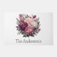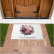 Hermosas flores púrpuras rosas y blancas en esta puerta exterior. Disponible en tres tamaños. Personaliza con tu nombre o cualquier texto.