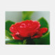 Rosa roja matutina cubierta de gotas de rocío matutino. rosa roja floreciendo en un jardín rosa. Fotografía floral de una flor rosa roja en flor. La rosa roja simboliza el amor, la pasión, el romance, la belleza, la discreción, la elegancia, el lujo y la sensualidad. Son perfectos para el Día de San Valentín, bodas, cumpleaños, Día de la Madre, aniversarios, regalo para el amante, madre, novia, novio...