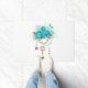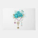 Llave de oro antiguo con rosas turquesa de moda decorados con hojas de oro blanco y cuentas rosas y azules. Color de moda. Rosas turquesas. Oro blanco. Tifanía azul.