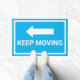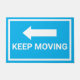¡Signo de tráfico "Sigue en movimiento" en azul brillante y blanco con una flecha hacia la izquierda corta, que dirige a la gente lejos! Personalizable para apuntar la flecha hacia la otra dirección.