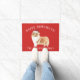 Adorables Navidades doormat con un Rough Collie usando un sombrero de santa en un fondo rojo festivo.