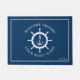 Elegante volante náutico blanco y azul marino vintage y anclaje con texto de personalizable.