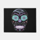 Alfombra de cráneo Diamante de imitación con joyas en diamantes diamante de imitación morados, blancos y multicolores. La Decoración De La Casa De Skull Mat. joyas dibujadas a mano decorando un cráneo con fondo negro, Cubierta de alfombras de cráneo de puerta delantera o trasera, Personalizar tu texto, color, estilo en tu alfombra con joyas para que coincida con tu gusto. Nota: los diamantes de imitación y el diseño metálico no son reales, se trata de un diseño de joya dibujado a mano en el cráneo.